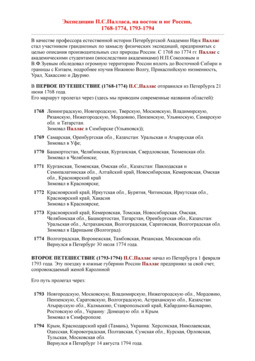 первое путешествие Паллас начал из Петербурга 21 июня: Ленинградская, Новгородская, Тверская, Московская, Владимирская, Рязанская, Нижегородская, Мордовия, Пензенская, Ульяноская, Самарская обл., Татарстан (зимовал в Симбирске (Ульяновск));